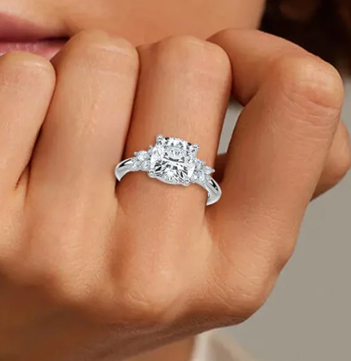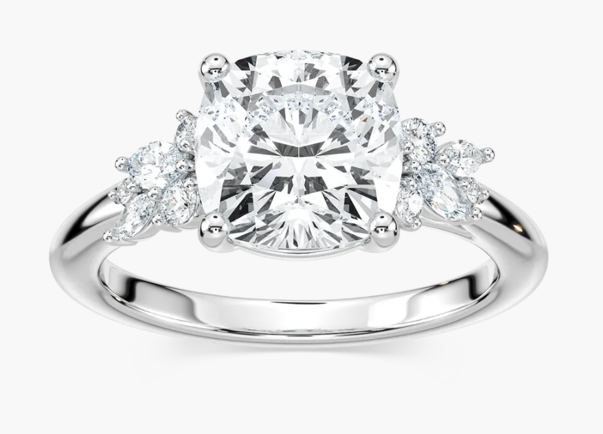 Natural Cushion Cut 2ct. Mixed Floral Engagement Ring