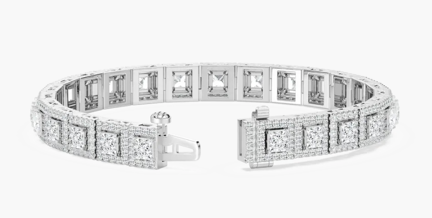 Lab-Grown Unisex Flexible Princess and Round Cut Bracelet 19.66Ct.
